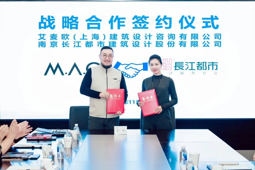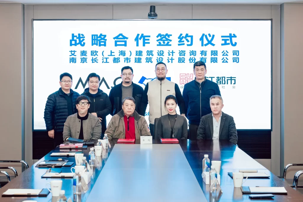 日前,艾麦欧(上海)建筑设计咨询有限公司(以下简称艾麦欧)与南京长江都市建筑设计股份有限公司签订战略合作框架协议。艾麦欧董事长助理迟迅、运营部总监姚定,長江都市荣誉董事长汪杰、总经理汪凯、总建筑师王畅等出席签约仪式。