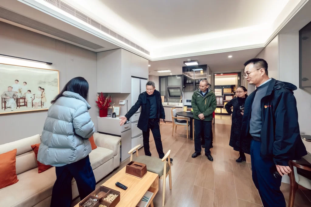 12月6日,中国建筑学会居住建筑专委会委员前往金基屿樾府高品质小区进行实地参观。设计单位長江都市董文俊董事长介绍,该项目规划5栋5-8层低密科技洋房,因地制宜量身打造了“台地洋房”,社区采用“台地式规划”,整体地势抬高约 4.5 米,形成“悬浮于城市之上”的隐奢感。北侧约 4000㎡ L 型街角花园与内部景观无缝衔接,打造“穿谷 – 临水 – 登台 – 隐园 – 观山”五重归家动线;建筑布局南低北高,楼间距达 15-20 米,搭配 0.54-0.58 超高窗墙比及南向大面积玻璃幕墙,实现“户户有景、栋栋采光”的居住体验。